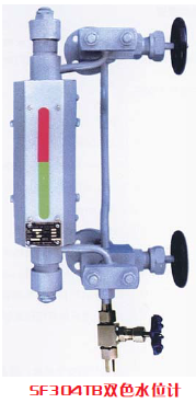双色水位计由上阀、下阀、本体、排污阀、平衡管及为罩